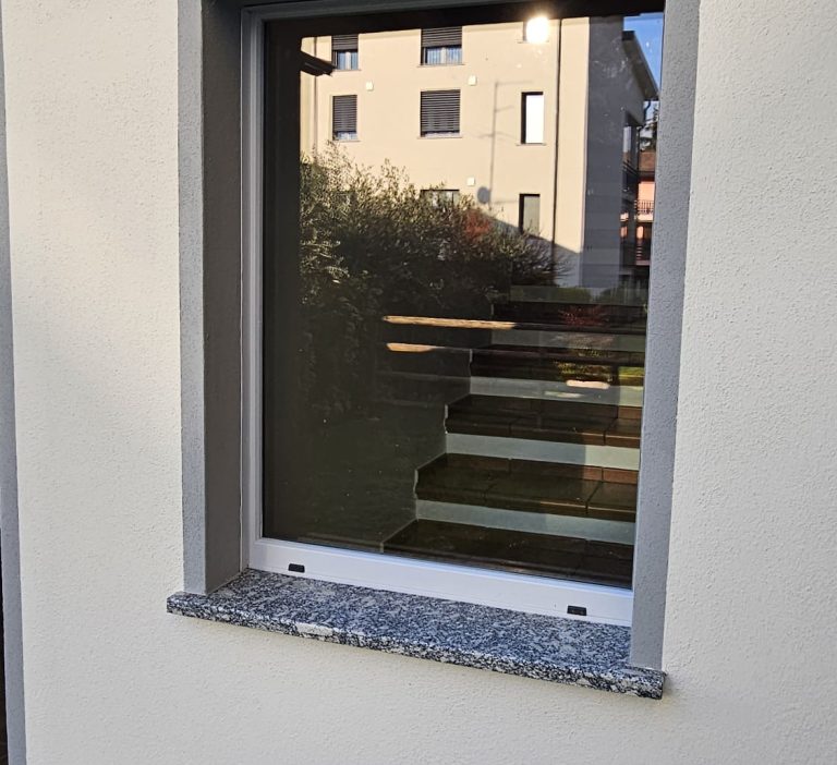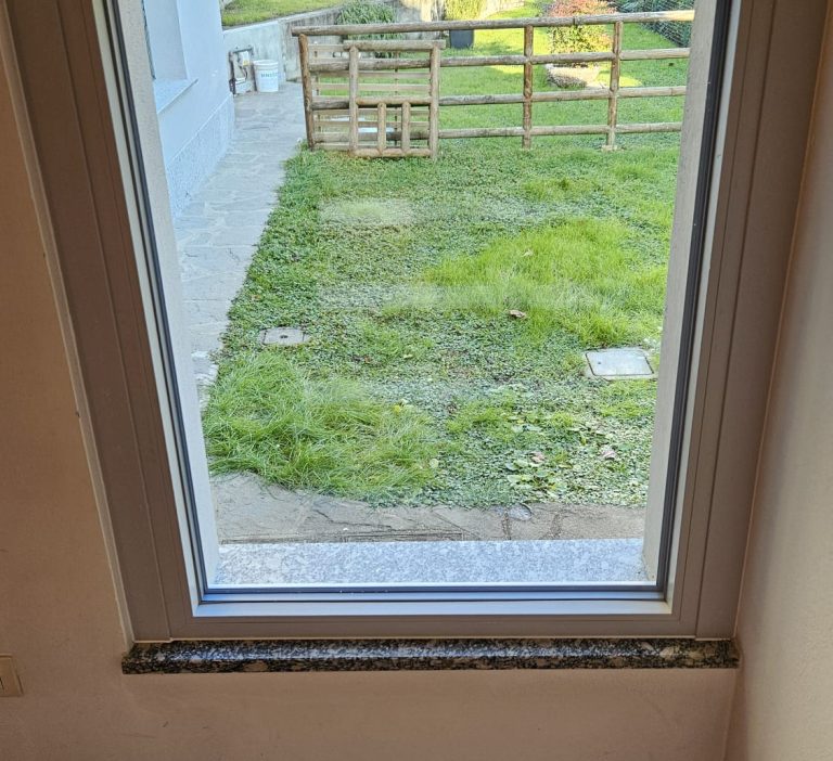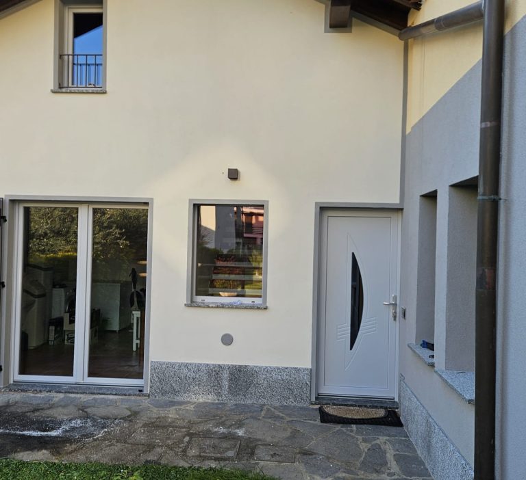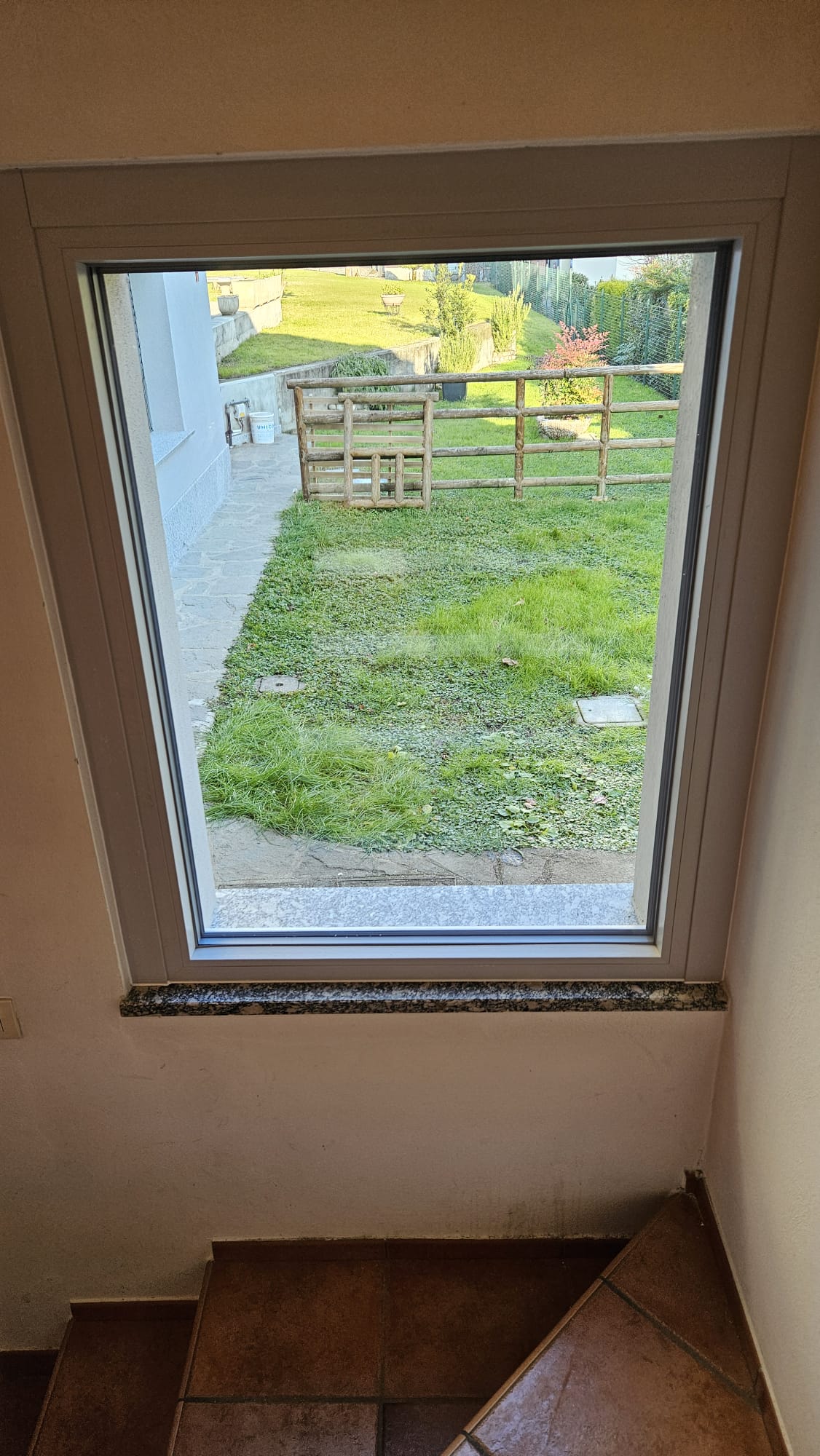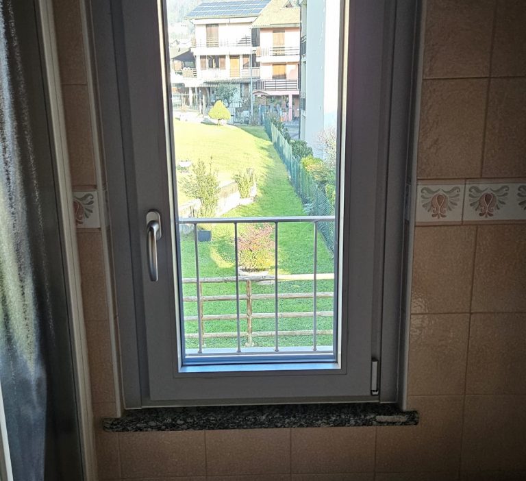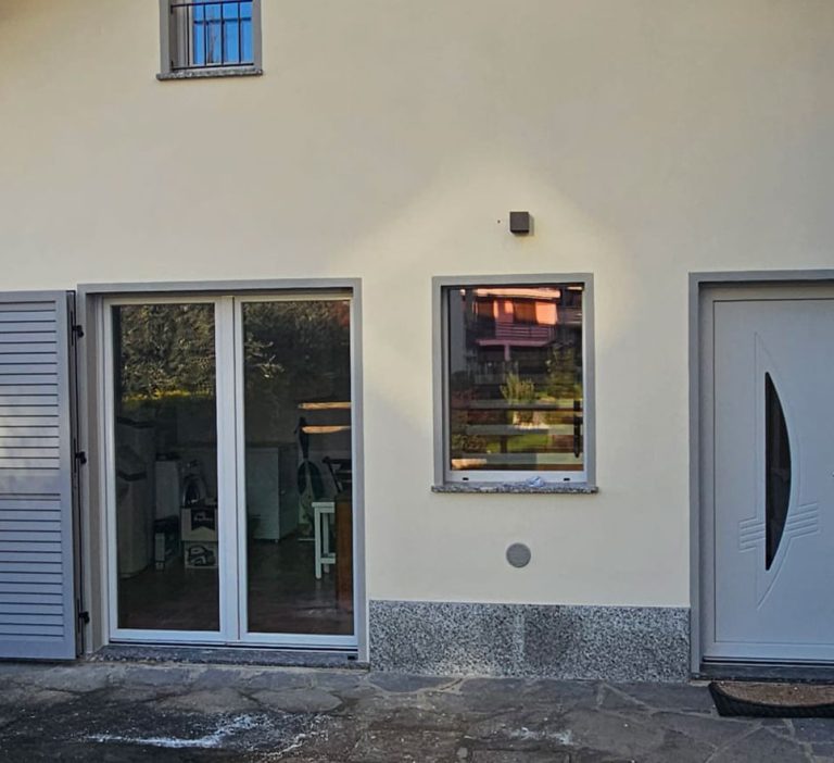 In questa abitazione abbiamo cambiato i vecchi infissi in legno – vetro doppio con serramenti PVC REHAU sistema SYNEGO con telaio 80 mm con tripla guarnizione di battura, struttura 7 camere e giunzione a 45° con saldatura “V-Perfect” senza cordolo, profili in classe S, come imposto dalla norma EN 12608-2005 con vetro basso emissivo.