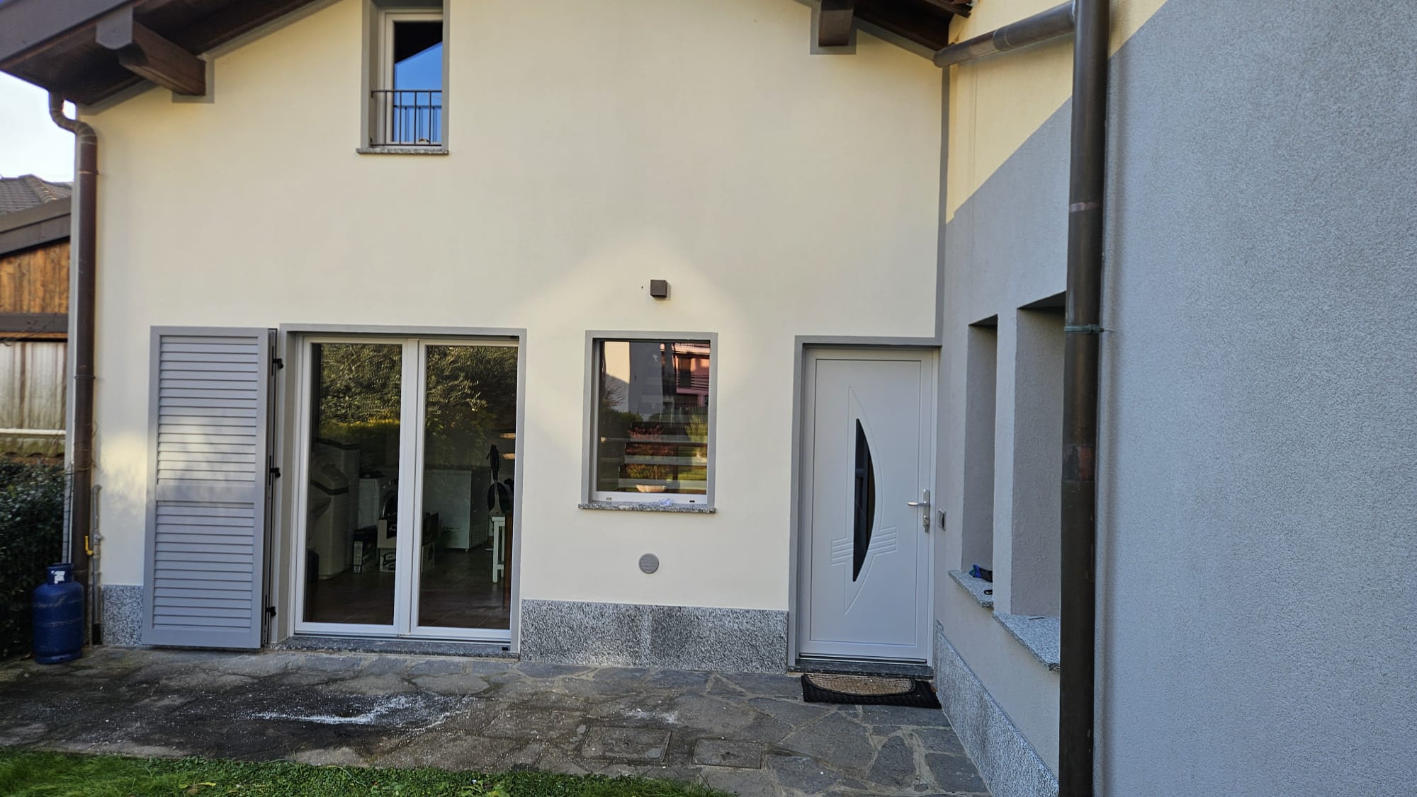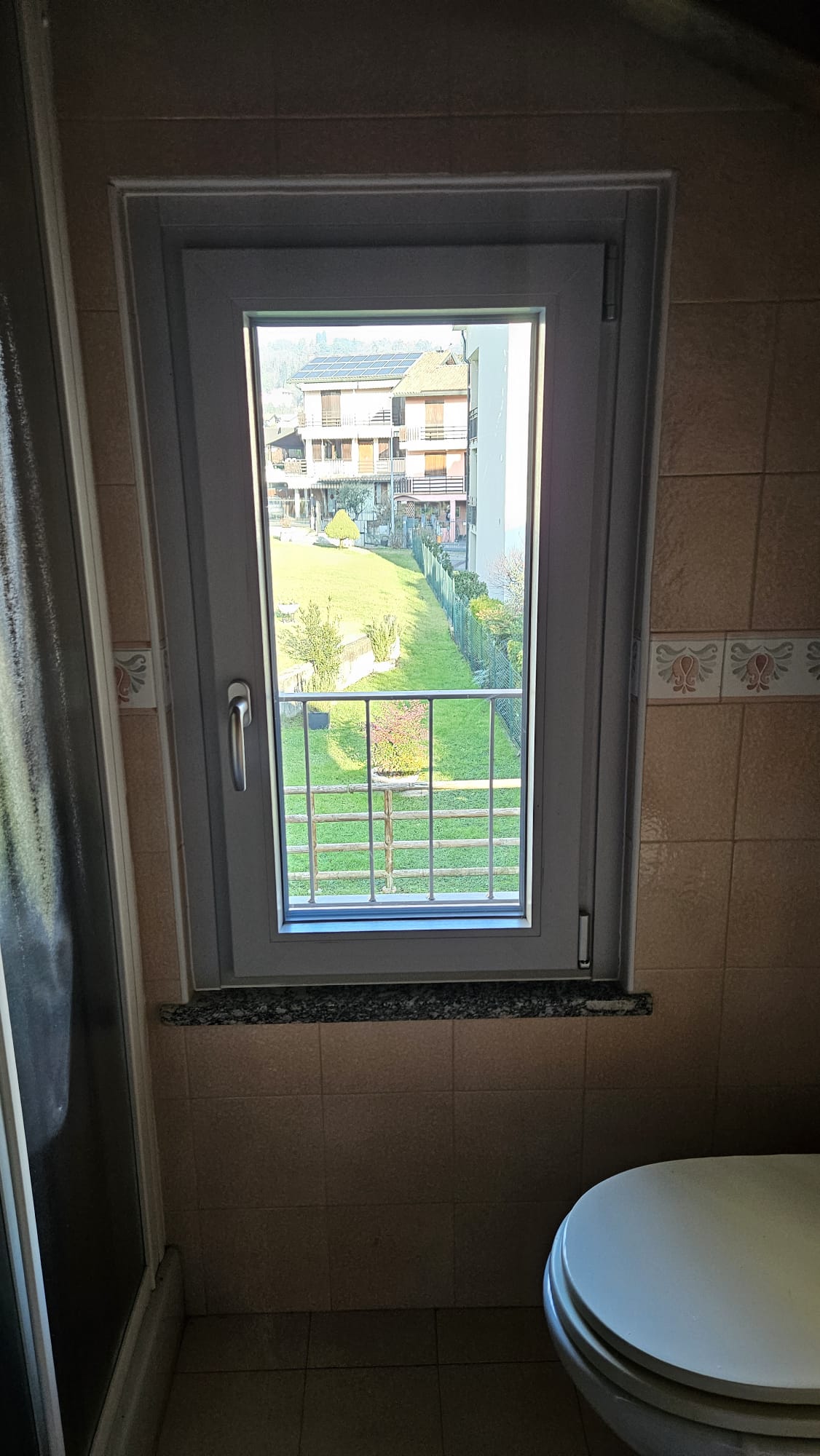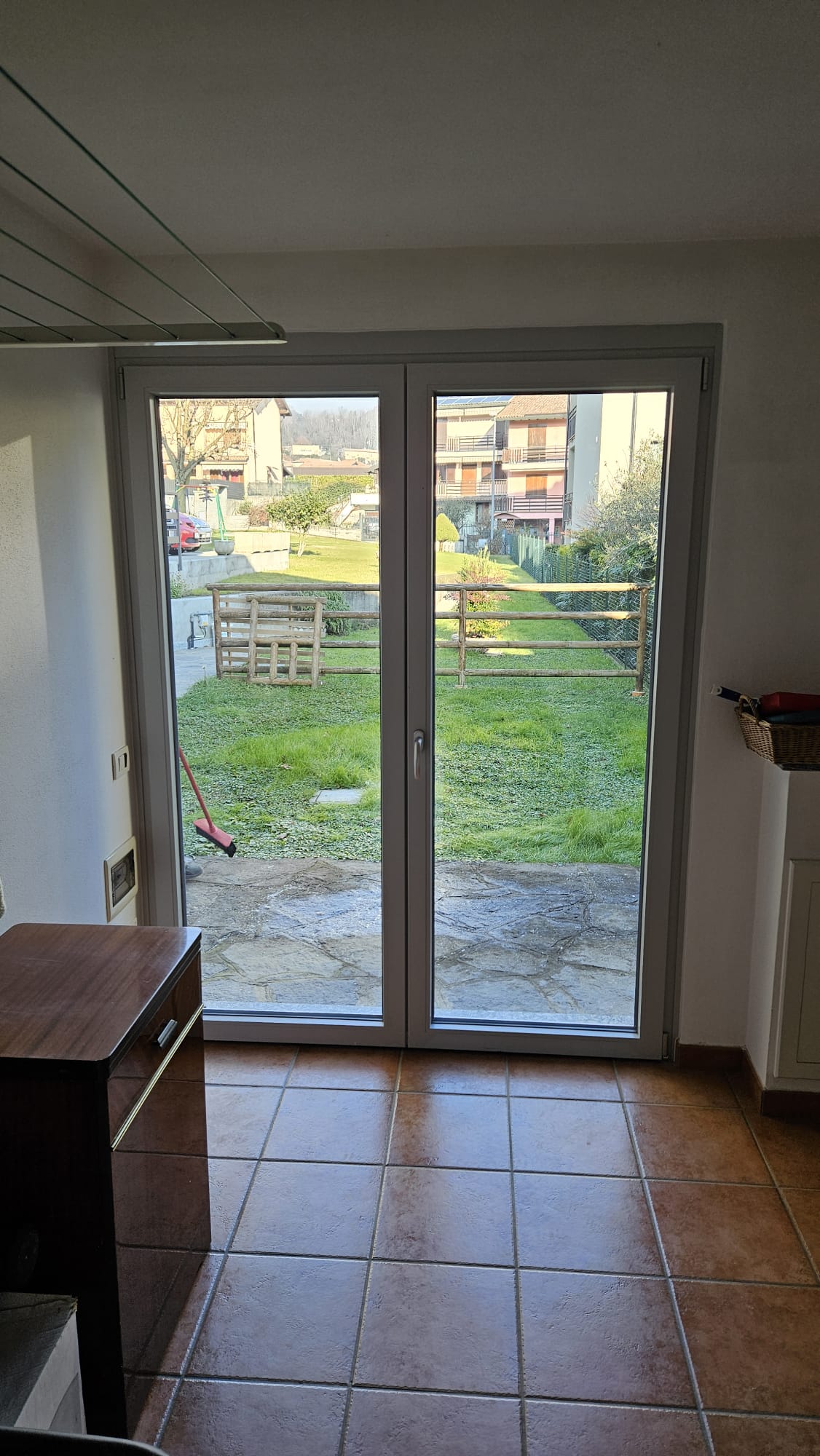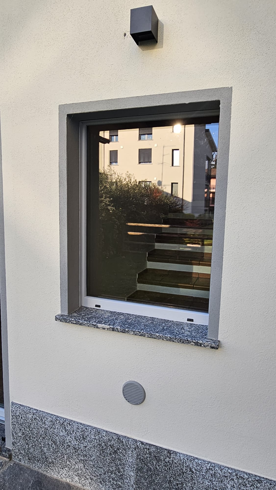 In questa abitazione abbiamo cambiato i vecchi infissi in legno – vetro doppio con serramenti PVC REHAU sistema SYNEGO con telaio 80 mm con tripla guarnizione di battura, struttura 7 camere e giunzione a 45° con saldatura “V-Perfect” senza cordolo, profili in classe S, come imposto dalla norma EN 12608-2005 con vetro basso emissivo.
