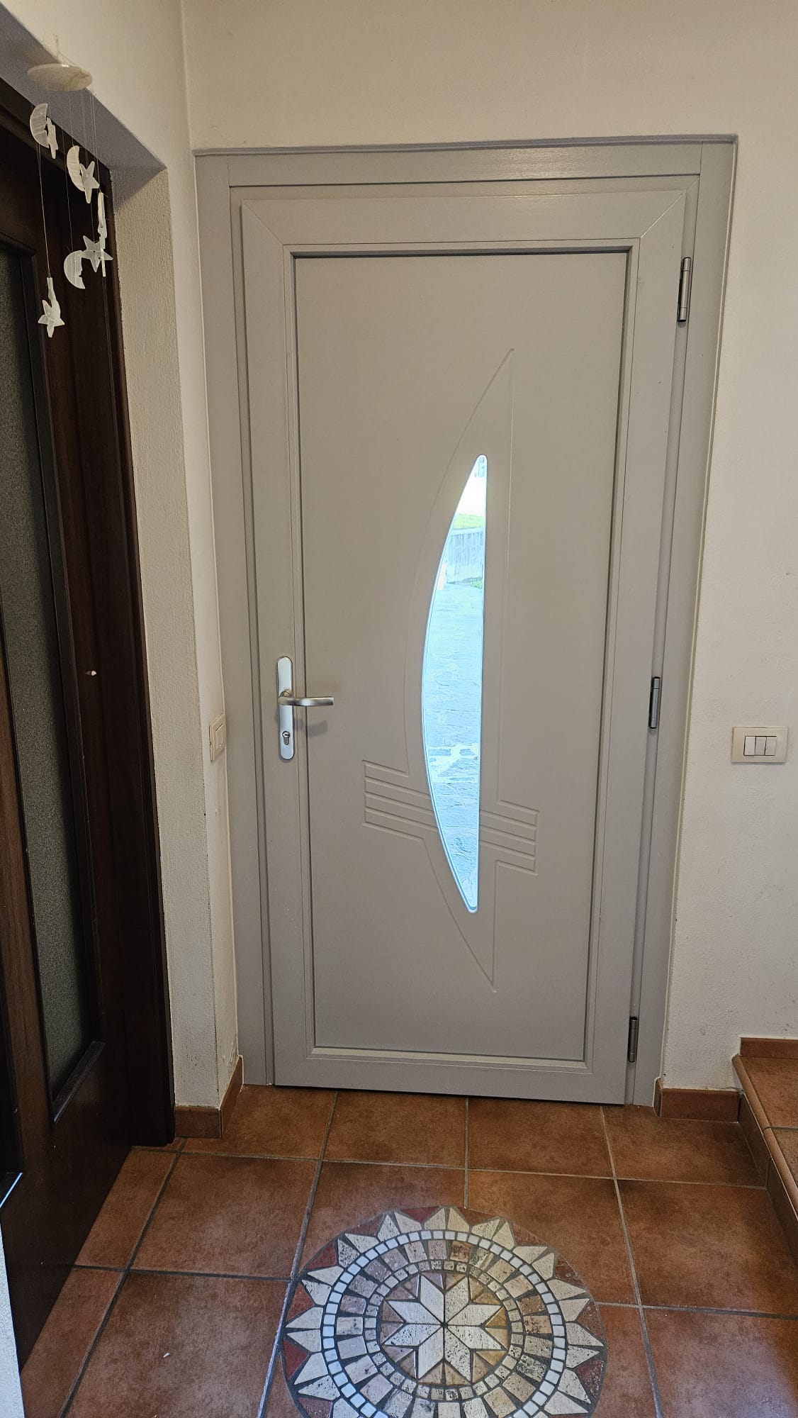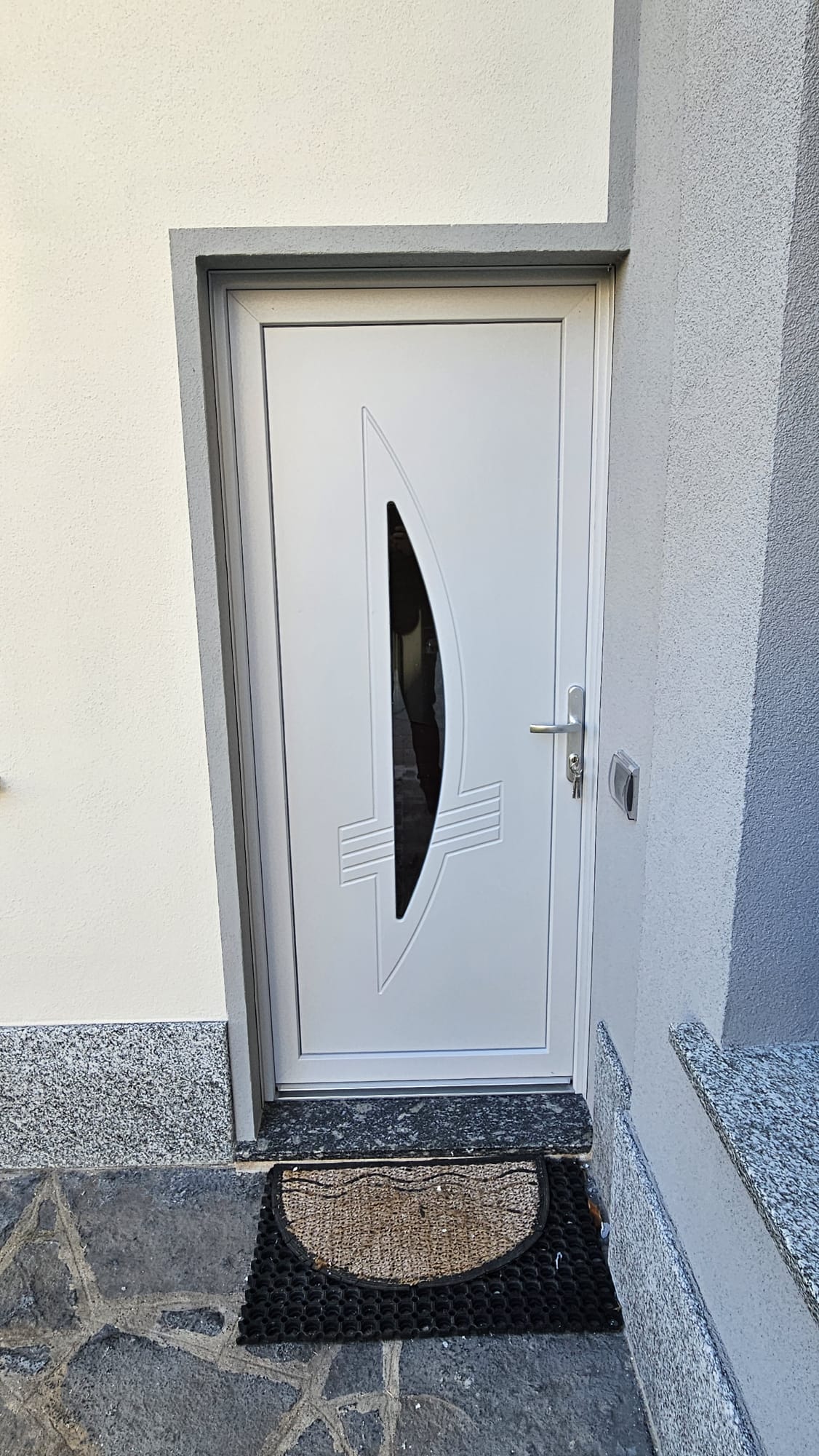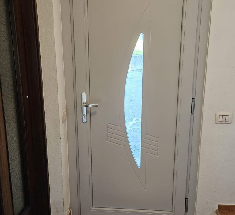 La vecchia porta d’ingresso è stata sostituita con un portoncino SYNEGO di REHAU con pannello pantografato. Questa soluzione oltre offrire un elegante design garantisce un’elevata resistenza alle effrazioni.